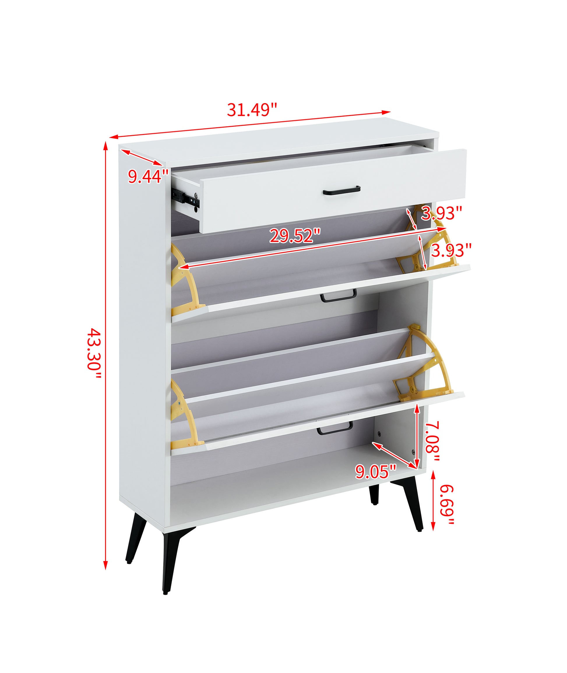 Shoe Cabinet , Shoe storage shelves, metal leg, White